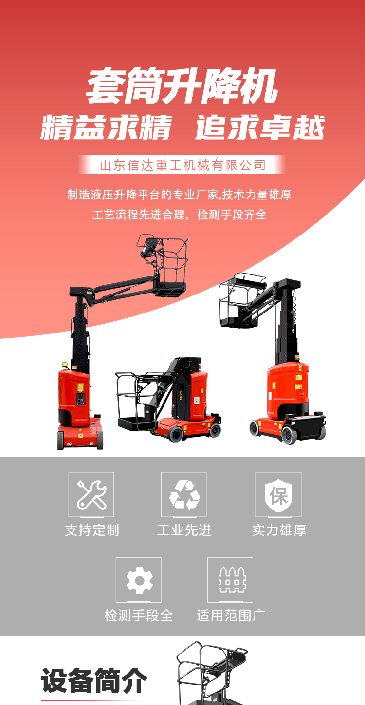 套筒式直臂升降機無飛臂